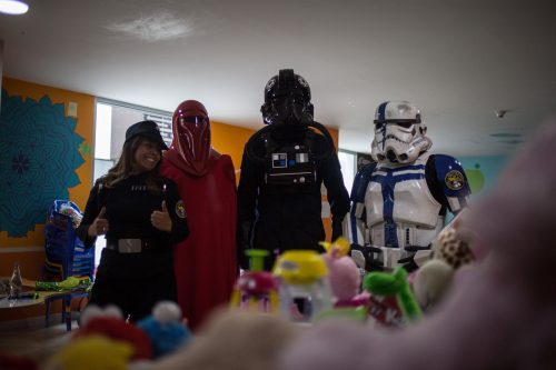 Oni su prerušeni u likove iz serijala naučno-fantastičnih filmova “Ratovi zvijezda” odlučili da mališanima donesu poklone i provedu vrijeme sa njima.
