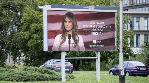 Naime, na bilbordu je fotografija Melanije Tramp uz poruku “Zamislite koliko daleko možete stići uz malo znanja engleskog jezika”.
