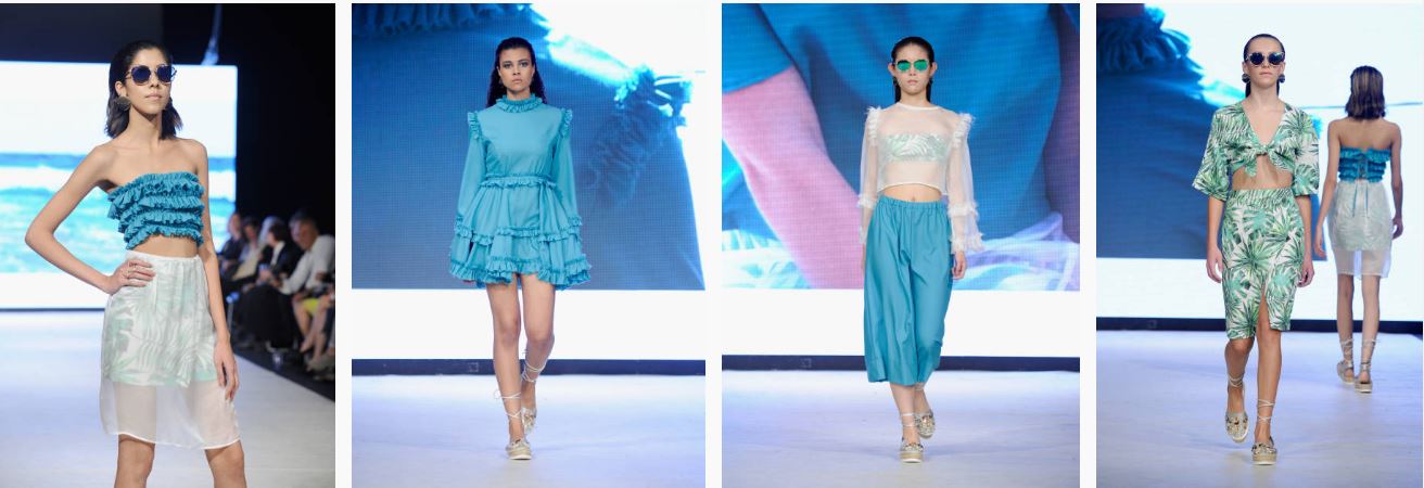 The colours of the sea and the use of transparencies are clear inspirations behind Charly Thorn’s Spring Summer 2018 collection. Tropical prints of green palms are highlighted on white canvas, accented with polished metallic espadrille shoes. This feels like a resort collection perfect for your next holiday.