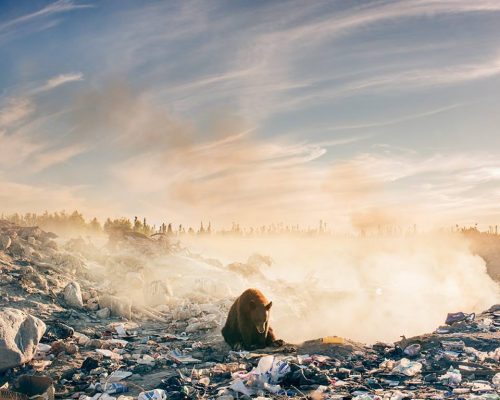 Fotografija iznemoglog medvjeda koji u potrazi za hranom sjedi usred gomile smeća na deponiji obavijenoj dimom, izazvala je brojne reakcije u javnosti.