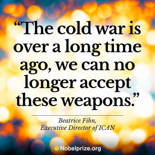 Dobitnik Nobelove nagrade za mir u 2017. godini je Međunarodna kampanja za zabranu atomskog oružja (ICAN) koja je podstakla usvajanje istorijskog sporazuma o zabrani atomskog oružja.