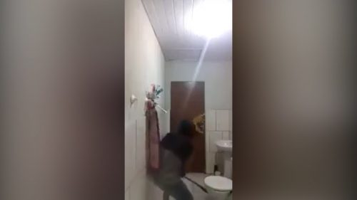 Dakle, ni metla ni mačka nijesu pomogli ovom čovjeku da prebrodi paniku od miša koga je zatekao u kupatilu koje je čistio.