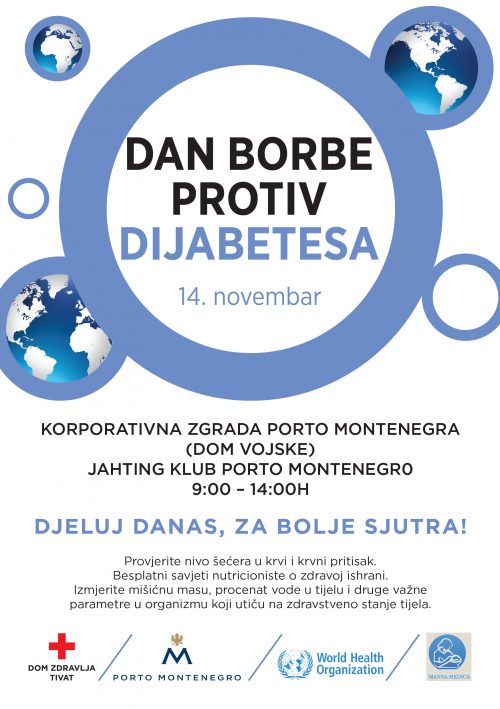 Porto Montenegro zajedno sa Svjetskom zdravstvenom organizacijom, Domom Zdravlja Tivat i ordinacijom Mansa Medica organizuje Dan borbe protiv dijabetesa, u utorak 14. novembra u Jahting klubu Porto Montenegra (nekadašnji Dom Vojske) od 9-14h.