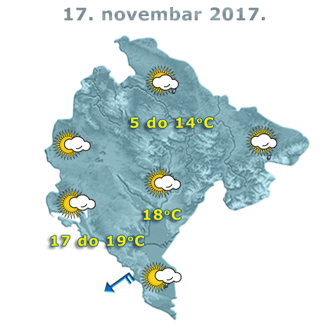Kako je saopšteno iz Zavoda za hidrometeorologiju i seizmologiju, na jugu se tokom dana očekuju sunčani intervali.