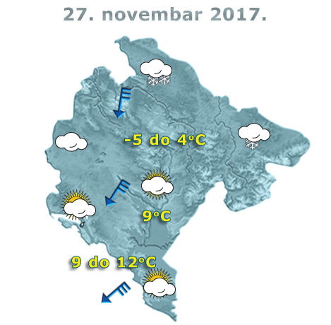 U Crnoj Gori danas će biti oblačno i vjetrovito, sa maksimalnom temperaturom do 12 stepeni.