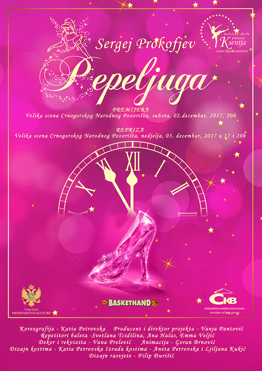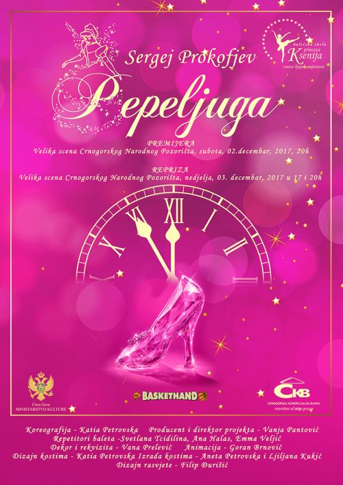 Premijera ovogodišnjeg ostvarenja Baletske škole „Princeza Ksenija“, balet „Pepeljuga“, na muziku Sergeja Prokofjeva održaće se u Crnogorskom Narodnom Pozorištu, u subotu 2. decembra, u 20h. Repriza je 3.decembra, dok će ostale izvedbe publika moći da vidi tokom nastupajuće godine u okviru repertoara Nacionalnog teatra.
