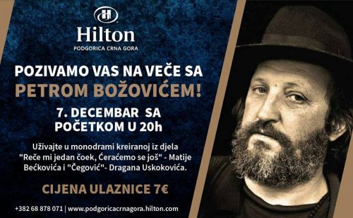 NaslovnicaARTHOTEL HILTON: Veče sa Petrom Božovićem 7. decembra ARTPREPORUKA HOTEL HILTON: Veče sa Petrom Božovićem 7. decembra 4.12.2017. u 11:56 Dijeliti FacebookTwitterPinterestWhatsApp U Hotelu Hilton 7. decembra u 20 časova, u monodrami nastupiće Petar Božović. Cijena ulaznice je 7 eura, a karte se mogu kupiti na recepciji Hotela. Tagshotel hiltonpetar božović Dijeliti FacebookTwitterPinterestWhatsApp Prethodni članakPODGORICA: Voda sa Mareze ispravna za pićeNaredni članakMNE MAGAZIN I CNP NAGRAĐUJU: Osvojite karte za predstavu „Ženidba“ POVEZANI TEKSTOVI MAGAZIN NEXUS PR platfoma unapređuje komunikaciju između novinara i organizatora događaja 8.12.2025. u 18:41 PREPORUKA EVROKUP: Budućnost Voli čeka Lajonse, karte od sjutra u prodaji 8.12.2025. u 16:19 PREPORUKA KADA JE SVAKA MINUTA VAŽNA: KCCG sproveo prvu simulacionu vježbu spremnosti za odgovor na vanredne situaciju 8.12.2025. u 14:55 POPULARNO NEXUS PR platfoma unapređuje komunikaciju između novinara i organizatora događaja 8.12.2025. u 18:41 EVROKUP: Budućnost Voli čeka Lajonse, karte od sjutra u prodaji 8.12.2025. u 16:19 KADA JE SVAKA MINUTA VAŽNA: KCCG sproveo prvu simulacionu vježbu spremnosti za odgovor na vanredne situaciju 8.12.2025. u 14:55 KIC: Dejan Kalezić gost tribine „Podgoričke priče” 8.12.2025. u 10:57 Učitati više