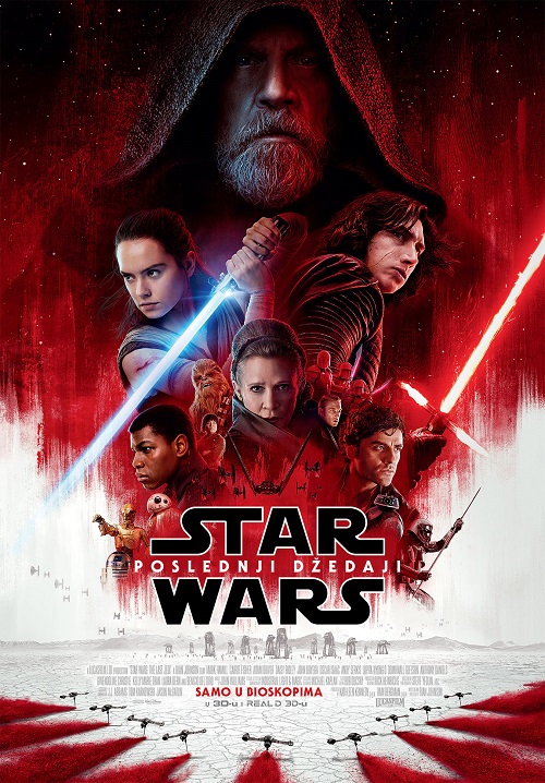 ,,Star Wars: Posljednji Džedaji” (Star Wars: The Last Jedi) premijerno će biti prikazan i u podgoričkom Cineplexx Delta City-u 13. decembra. Režiju i scenario ovog ostvarenja potpisuje Rajan Džonson, a ulogu tumače Dejzi Ridli, Džon Bojega, Mark Hamil, Tom Hardi, Keri Fišer, Endi Serkis, Gvendolin Kristi, Adam Drajver, Džozef Gordon-Levit, Benisio del Toro, Lupita Niongo i drugi.