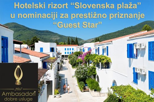 Hotelski rizort ,,Slovenska plaža’’ koji funkcioniše u sastavu Hotelske grupe ,,Budvanska rivijera” je od strane Redakcije renomiranog časopisa iz svijeta turizma ,,Turistički svet” nominovan za jedno od prestižnih priznanja Guest STAR laureata zemlje partnera za najbolji crnogorski hotel u 2017. godini. Hotelski rizort je nominovan za iskorak u osvajanju i odbrani kvaliteta proizvoda i usluga, njihovo unapređenje, inovativnost, postavljanje novih standarda i profitabilnijih koncepata, kao i za izuzetne poslovne rezultate u tekućoj godini.