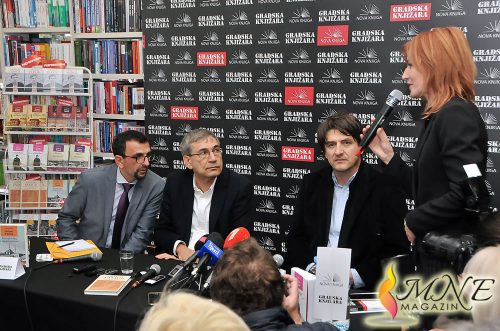 – Doputovao sam jutros iz Istanbula. Srećan sam što sam ovdje. Prije pet minuta razgovarali smo o popularnosti knjiga. Složio bih se sa onim da je u Crnoj Gori popularnost knjiga velika kada se gleda odnos popularnosti i čitanosti knjiga u odnosu na broj stanovnika i da sam ja stoga najpopularniji svjetski pisac u ovoj zemlji. To se dokazuje činjenicom da mi je do sada ovdje objavljeno šest romana. I sedmi će uskoro. Zahvaljujem svom izdavaču na tom velikom uspjehu, posebno imajući u vidu da sarađuju sa regionalnim tržištem i objavljuju knjige na srpskom, hrvatskom i bosanskom jeziku – kazao je Pamuk.