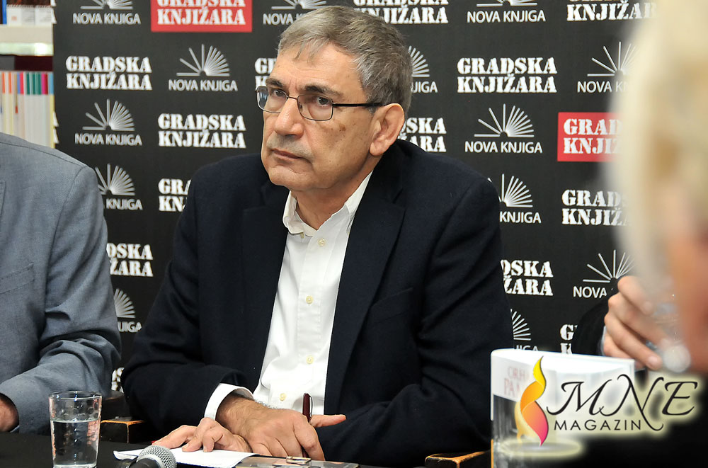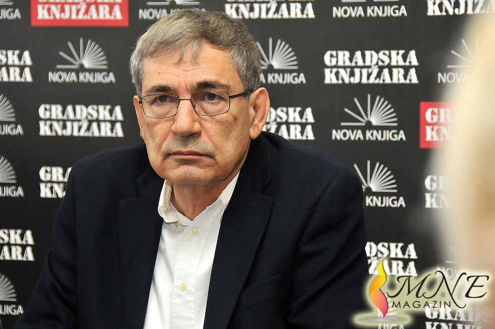 – Doputovao sam jutros iz Istanbula. Srećan sam što sam ovdje. Prije pet minuta razgovarali smo o popularnosti knjiga. Složio bih se sa onim da je u Crnoj Gori popularnost knjiga velika kada se gleda odnos popularnosti i čitanosti knjiga u odnosu na broj stanovnika i da sam ja stoga najpopularniji svjetski pisac u ovoj zemlji. To se dokazuje činjenicom da mi je do sada ovdje objavljeno šest romana. I sedmi će uskoro. Zahvaljujem svom izdavaču na tom velikom uspjehu, posebno imajući u vidu da sarađuju sa regionalnim tržištem i objavljuju knjige na srpskom, hrvatskom i bosanskom jeziku – kazao je Pamuk.