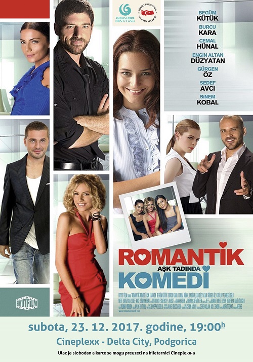 Turski film ,,Romantična komedija” biće prikazan u podgoričkom ,,Cineplexx – Delta city”-u u organizaciji Ambasade Republike Turske i Instituta Yunus Emre Podgorica u subotu 23. decembra sa početkom od 19 sati. Ulaz za projekciju je slobodan.
