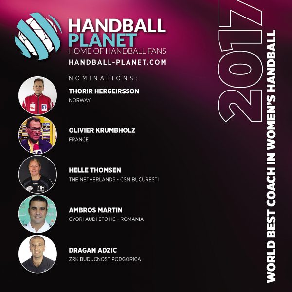Ostatak nominovanih čine Torir Hergeirson (selektor Norveške), Hele Tomsen (selektorka Holandije, trener CSM Bucurešta), Olivije Krumbholc (selektor Francuske) i Ambroš Martin (trener Đera).