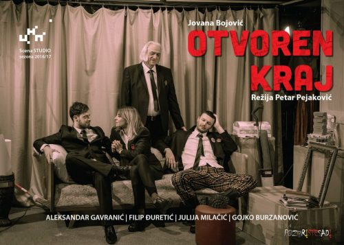 U petak 19. januara u 20 sati na Velikoj sceni biće izvedena predstava ,,Otvoren kraj“ Jovane Bojović u režiji Petra Pejakovića.