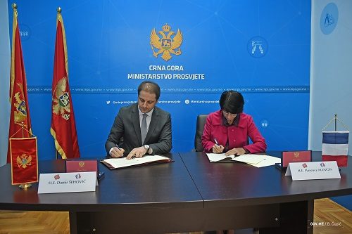 Ministar prosvjete dr Damir Šehović i direktorica za kontinentalnu Evropu u Ministarstvu za Evropu i inostrane poslove Republike Francuske Florans Manžen sastali su se danas u prostorijama Ministarstva prosvjete gdje su potpisali Administarativni sporazum za promovisanje i podršku izučavanju francuskog jezika u Crnoj Gori.