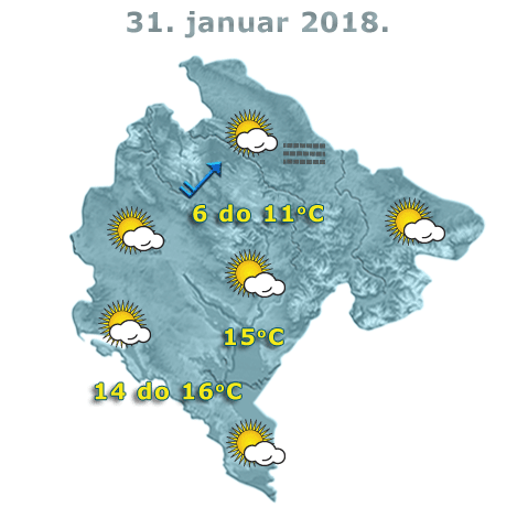 Jutarnja temperatura od minus šest do šest stepeni, najviša dnevna od šest do 16 stepeni.