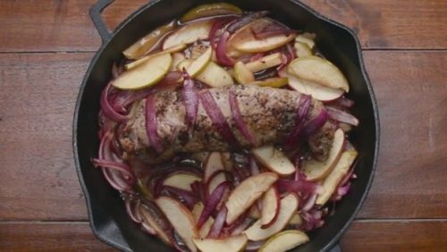 Možete ga peći u pekaču, jer se još i “kuva” u začinima i to oko dva sata na na 180-200°C. Ako ste ljubitelj slatko-slanih kombinacija, oko mesa – kada je do pola gotovo – nasjecite jabuke i pecite sve zajedno. Poslužite uz krompir i salatu po želji.