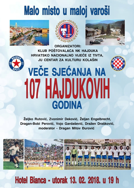 Na ovaj način će se obilježiti 107 godina od osnivanja NK “Hajduk” iz Splita i podsjetiti na istorijat kluba koji je imao i ima svoje pristalice u svim sredinama nekadašnje Jugoslavije.