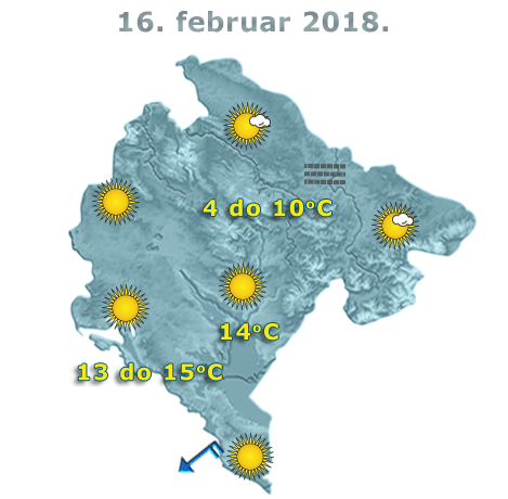 U Crnoj Gori danas će biti pretežno sunčano, uz slab do umjeren razvoj oblačnosti i tokom dana osjetno toplije vrijeme.