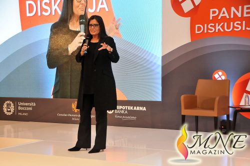 On je podsjetio i na dosadašnju konekciju koja postoji između Hipotekarne banke i Univerziteta Bokoni i najavio  Dolly Predović, počasnu konzulku Crne Gore u Milanu, nekadašnju profesoricu Korporativnih finansija na Bokoni Univerzitetu i suorganizatorku panela.
