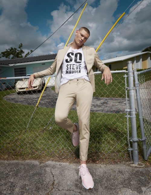 Američki brend obuće STEVE MADDEN novom kolekcijom za proljeće 2018. pruža nadrealno iskustvo. Bijela boja dominira ženskom kolekcijom i predstavlja simbol čišćenja, podjednako zastupljena u kreacijama od novih modela patika do čizmica. Zemljani tonovi uz pink akcente u novim siluetama su svojevrsno osviježenje. Osećaj kontrolisanog haosa prožima miks kariranih dezena, floralnih i printova šahovske table, uz jasne motive dragog kamenja, bisera i lakiranih preliva.