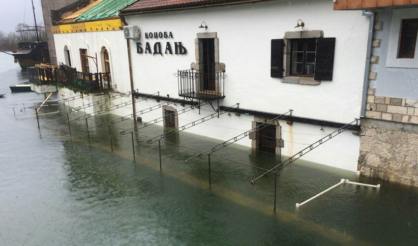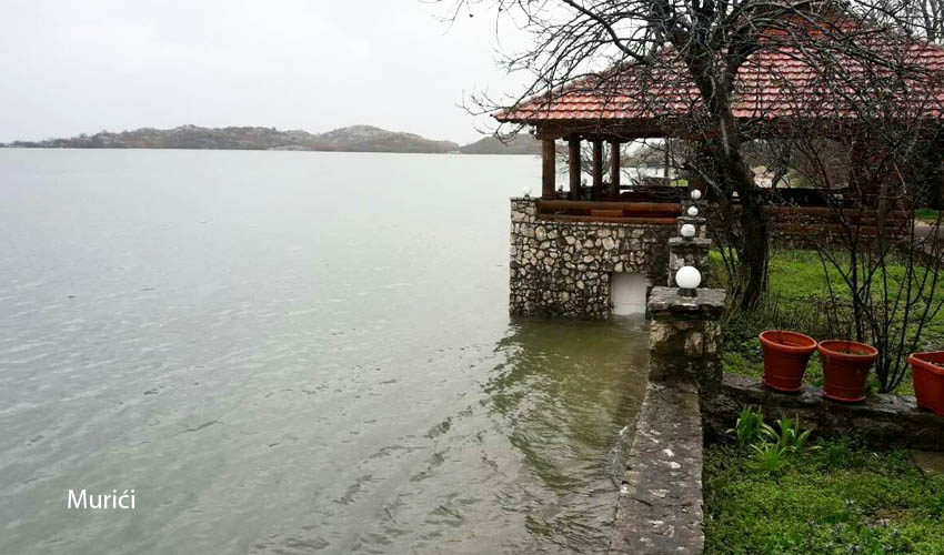 Voda prodire u turistički kompleks i izletište u Donjim Murićima. Prema riječima vlasnika ovog objekta Hasana Muratović nivo vode u Skadarskom jezeru porastao za dva i po metra.