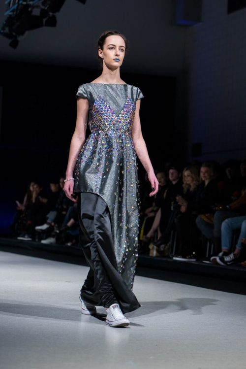 VCC otvorio je veče širokim izborom talentovanih diplomiranih studenata. Džejms Džaroum kreirao je mušku kolekciju inspirisanu vojnim stilom sa prvobitnim printom enzima s Tencel vlaknima. Kolekcija Stele Ču sa klasičnim bezbojnim komadima bila je ispunjena samopouzdanjem, a linija za žene Nika Gruzlinga donijela je kombinezone i haljine s kapuljačom kreativnih izreza. Ketrin Poter zatvorila je reviju kolekcijom ,,Circus Circus”, zabavnom mješavinom printova sa krznenim, kožnim i cvjetnim vezom.