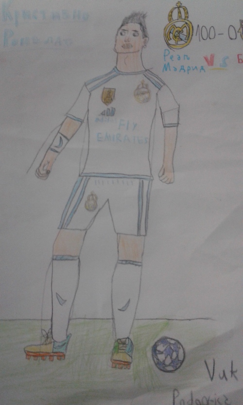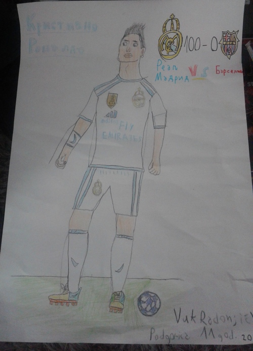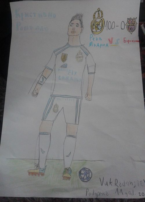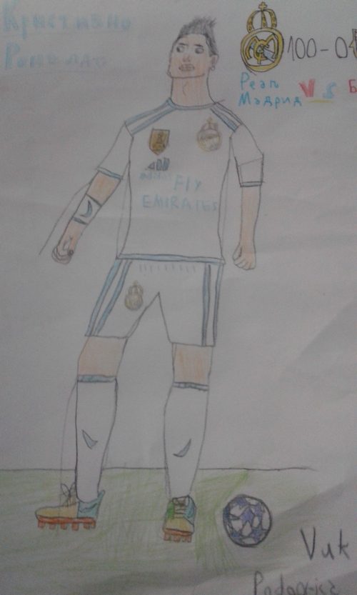 Jedanaestogodišnji Vuk Radonjić crtežom je iskazao kako on vidi jednog od najboljih fudbalera današnjice-Kristijana Ronalda. Sve pohvale za Vuka, učenika petog razreda podgoričke OŠ ,,Sutjeska” koji, uz mnoštvo školskih obaveza, izdvaja vrijeme da svoje ideje i shvatanja zabilježi crtežom.