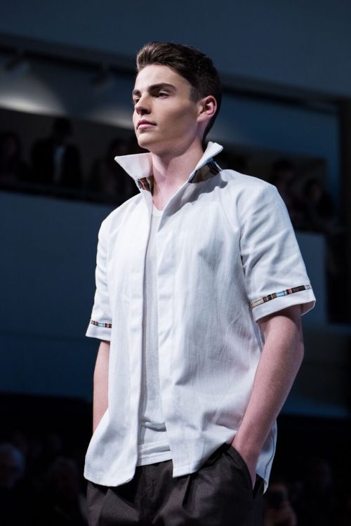 First up, local brand This is James presented a sophisticated collection of menswear. Classic pieces such as trench coats, pinstriped trousers, and crisp white shirts were juxtaposed with modern detailing such as studs along shoulder seams and floral printed segments.