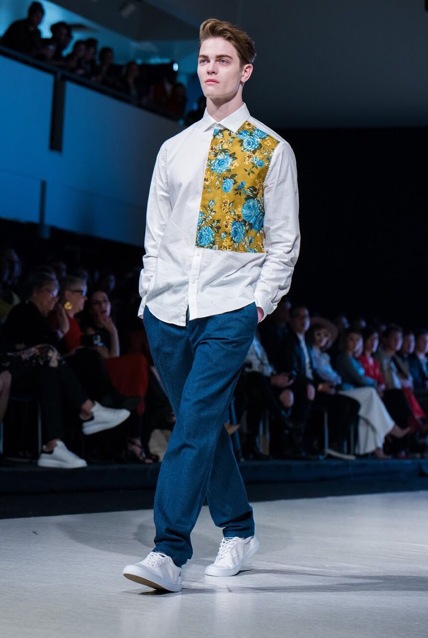 First up, local brand This is James presented a sophisticated collection of menswear. Classic pieces such as trench coats, pinstriped trousers, and crisp white shirts were juxtaposed with modern detailing such as studs along shoulder seams and floral printed segments.
