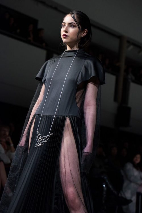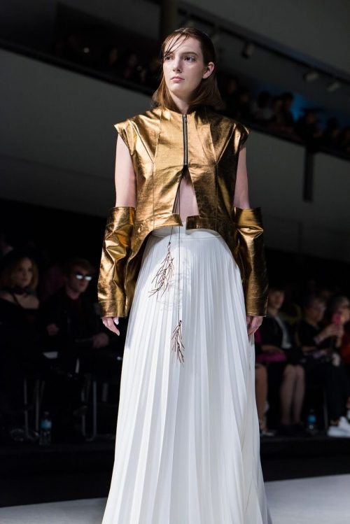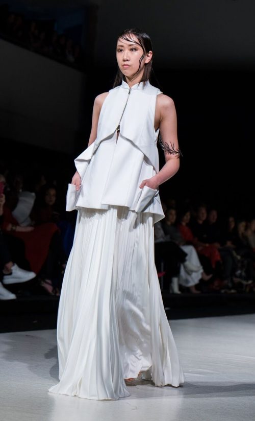 Marronier College of Fashion Design iz Japana predstavio je dva talentovana dizajnera Mono Vatanabe i Rinku Hjodo. Mono Vatanabe povela nas je u budućnost sa tehničkim detaljima i kopčama. Sive su akcentovale zelene, narandžaste i purpurne slojevite kreacije. Jastučići za koljena i visoki šlicevi na okovratnicima u istoj nijansi sjedinili su kolekciju.