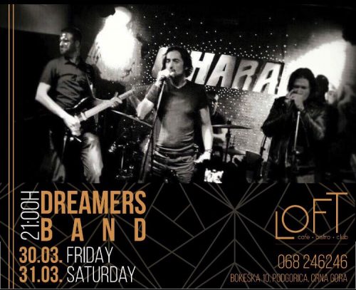 U podgoričkom Caffe Bistro Club-u Loft večeras i sjutra nastupa bend ,,Dreamers” iz Splita. Nastupi počinju u 21 sat. Bend izvodi pop-rok numere izvođača sa ex YU prostora.