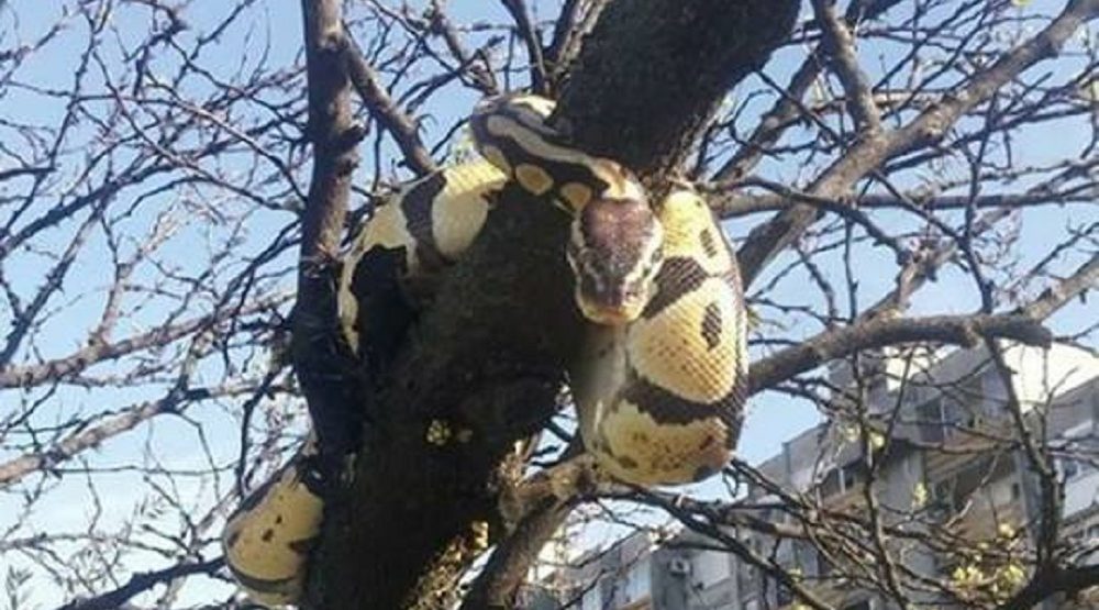 Na Facebook stranici Podgorički vremeplov objavljena je fotografija loptastog pitona, koji je, navodno, viđen danas na drvetu u podgoričkom naselju Pobrežje.