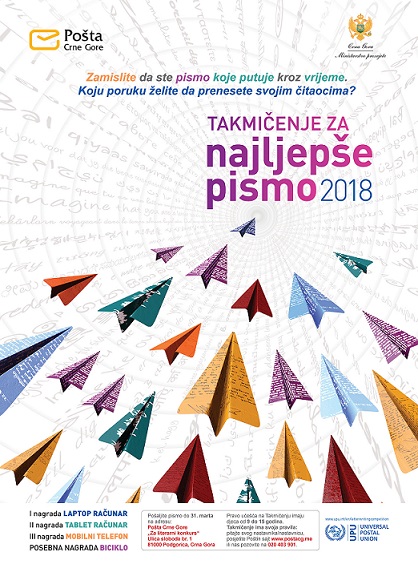Anastasija Petrović, učenica OŠ ,,Njegoš“ sa Cetinja, prema ocjeni stručnog žirija Ministarstva prosvjete napisala je najljepše pismo na Poštinom literarnom konkursu. Takmičenje za najljepše pismo sa zadatom temom ,,Zamislite da ste pismo koje putuje kroz vrijeme. Koju poruku želite da prenesete svojim čitaocima?“ obuhvatilo je učenike 163 osnovne škole u Crnoj Gori, a na adresu Pošte pristiglo je 140 radova.