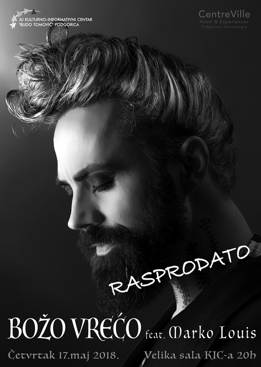 Ulaznice za koncert Boža Vreća, koji će biti održan 17. maja u Kulturno – informativnom centru „Budo Tomović“, rasprodate su, saopšteno je iz ove ustanove.