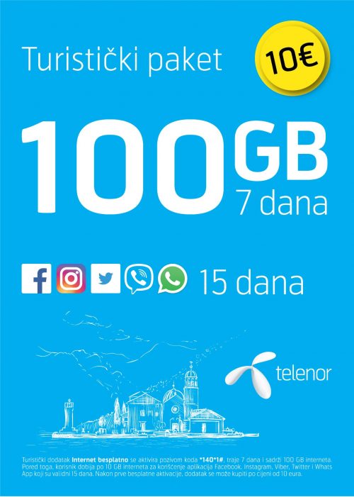 Paket koji košta deset eura donosi 100 gigabajta interneta koji se mogu iskoristiti tokom sedam dana. Uz to, korisnici dobijaju po deset gigabajta za Facebook, Instagram, Viber, Twitter i WhatsApp, validnih tokom 15 dana.