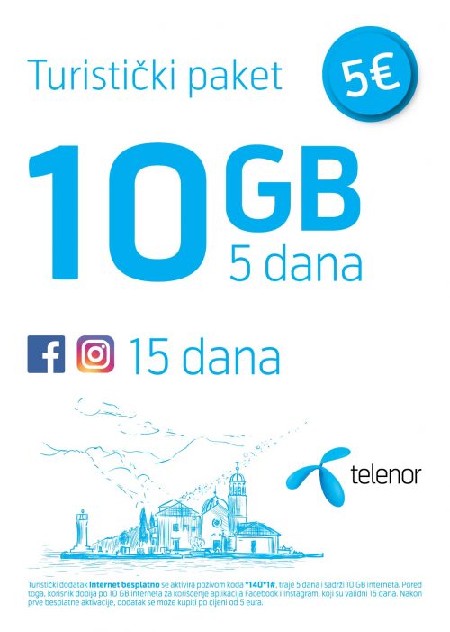 Paket koji košta deset eura donosi 100 gigabajta interneta koji se mogu iskoristiti tokom sedam dana. Uz to, korisnici dobijaju po deset gigabajta za Facebook, Instagram, Viber, Twitter i WhatsApp, validnih tokom 15 dana.
