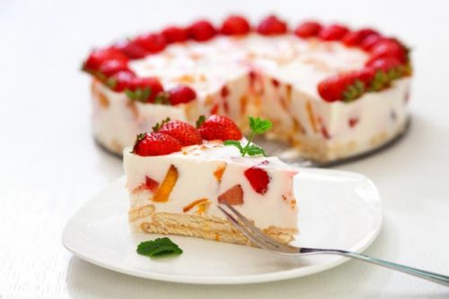 Najbolje je da ova torta bude pripremljena sa voćnim jogurtom istog ili bar približno istog ukusa kao što je voće koje ćete koristiti za njenu pripremu.