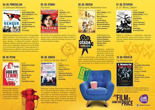 – Četvrto izdanje festivala nam donosi i jednu programsku novinu. Obzirom na veliki broj mlađe populacije, naših vjernih pratilaca, odlučili smo da u sklopu „Džada Film Fest”-a, kreiramo novi sadržaj pod nazivom „Džada Junior“. Dan koji će biti posvećen, ne samo odraslima, već prvenstveno mlađoj populaciji – navodi se u saopštenju organizatora.