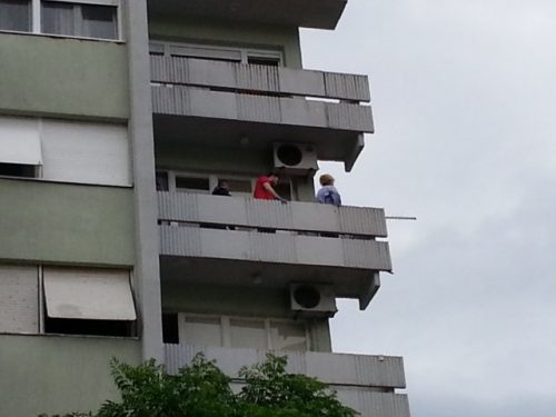 Ruska državljanka čiji identitet je zasad nepoznat, oko 9.30 sati pojavila se na balkonu stana na šestom spratu solitera i prijetila da će da skoči glasno vičući.