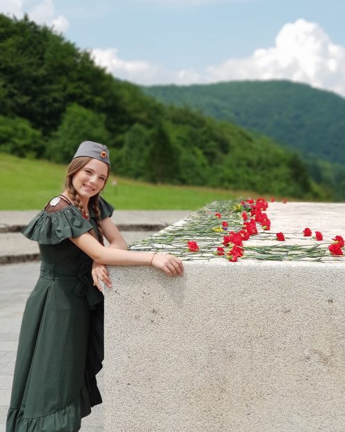 Oko šest hiljada boraca i antifašista iz svih bivših jugoslovenskih republika, te predstavnici društvenog i političkog života Crne Gore i ostalih država regiona prisustvovali su veličanstvenom skupu u Dolini heroja, pored spomenika na Tjentištu i nisu krili oduševljenje ovom harizmatičnom i talentovanom djevojčicom.