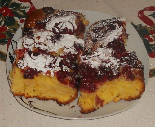7.Prečeni kolač ostaviti da se ohladi, posuti šećerom u prahu, pa sjeći na kocke.