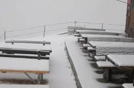 Na planinskom vrhu Kredarica u Sloveniji jutros je pao snijeg. Objekti i priroda koji se nalaze na 2.515 metara visine su potpuno bijeli.