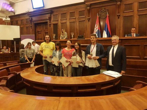 Učenici Matematičke gimnazije Ksenija Belada, Kosta Vukićević, Nikolina Lalić i Nađa Stojanović, s profesorom Božom Bakovićem, učestvovali su na Šestom kupu matematičke gimnazije u Beogradu, koje je od 26. juna okupilo takmičare iz 12 zemalja.