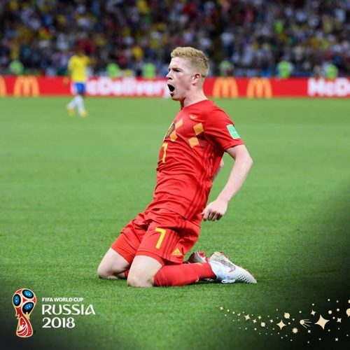 Belgija je drugi polufinalista Svjetskog prvenstva u Rusiji. Slavila je protiv Brazila 2:1. Fernandinjo je u 13. minutu postigao autogol, a zatim je pogodak za Belgiju, u 31. minutu upisao De Brujne. De Brujne je tako postao stoti strijelac na ovom svjetskom prvenstvu. Gol za Brazil postigao je Augustino u 76. minutu.