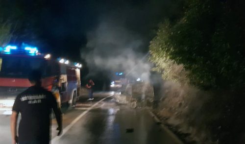 Sinoć prije ponoći na magistrali u blizini Čanja zapalilo se vozilo, pa se požar prenio na okolinu, prijeteći da ugrozi i objekte.