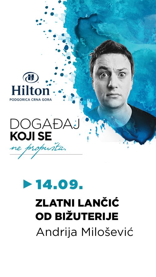 Stend-ap komedija Andrije Miloševića ,,Zlatni lančić od bižuterije” biće održana 14. septembra u 20 sati u Kristalnoj dvorani hotela ,,Hilton Podgorica Crna Gora”.