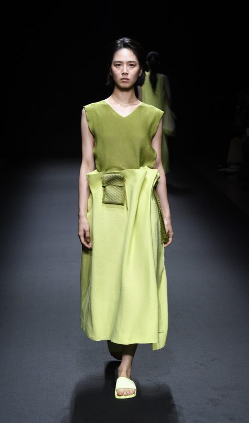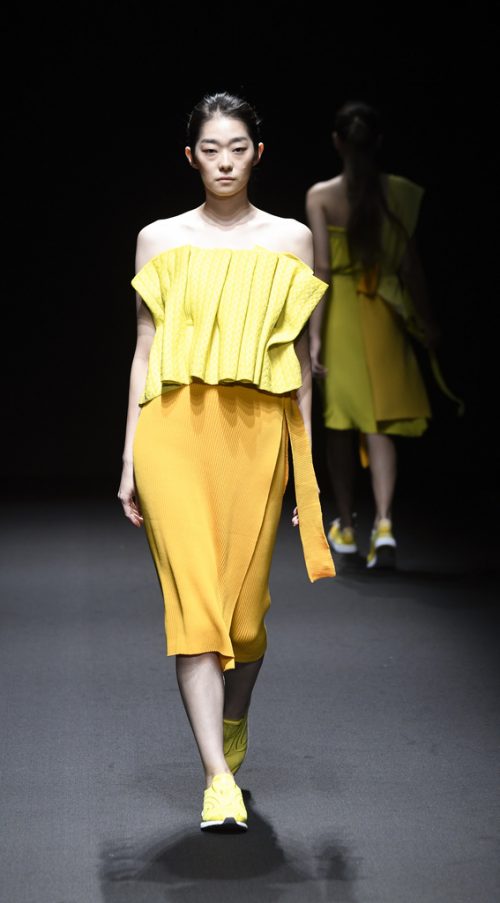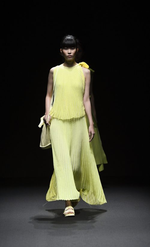 Njemačka dizajnerka Anika Klas unijela je zrake sunca u proljeće-ljeto sa jednobojnom kolekcijom ,,Jaune”. U različitim nijansama žute, teksturno pletivo bilo je preklopljeno, naborano i uštrikano kako bi se stvorio strukturiran izgled. Slikovna paleta od boje kanarinca do svijetlo limun sa mekim torbama u istoj nijansi i pletenim džepovima bili su dodatni efekat. Besprekorna kolekcija. Anika Klas razvila je novu proizvodnu tehniku zamišljajući digitalnu mašinu za pletenje kao 3D štampač. Haljina na preklop u toplijoj nijansi uparena je sa velikim širokim pletivom čime je kreirana meka i prirodna forma.