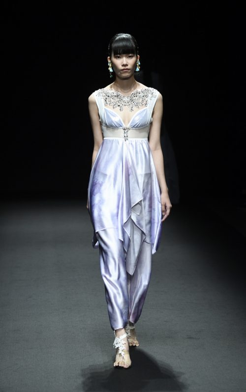 Aliča Perilo donijela je ,,vrtoglavu” paletu boja i ženstvene večernje haljine na pistu sa kolekcijom pod imenom ,,Sans”. Tehnike poput oslikavanja, heklanja, nizanja perli i ukrašavanja omaž su pokojnoj babi dizajnerke. Nježna paleta lavande, zelene, srebrne, ružičaste, zlatne, bijele i crne krasila je haljine, uz perle i crne i pozlaćene ukrase. Bijela mrežasta haljina s dugim rukavima i nježnim pink efektom, te plavim rubovima upotpunjena je ručno rađenim minđušama. Asimetrični rubovi i slojevi nabora stvorili su oblik preko linije. Odjevni predmet koji se izdvojio – blijedi slojevi široke prozirne tkanine preko večernje haljine sa izrezima na ramenima i dugim lepršavim rukavima, upotpunjena s tijarom i velikom kapuljačom poslali su snažnu poruku ženama.