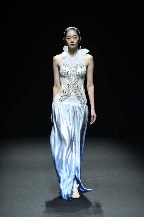 Sljedeći je bio američki brend ,,The House of AmZ” koji je predstavio kolekciju razdvojenu u nekoliko segmenata – Zima, Neutralno, Lotus, Rumenilo, Stapanje i Finale. Svaka kapsula razvila je koncept ,,Samo-stapanje”, reflektujući razne emocije i odgovore na situacije dok se razvijamo i rastemo ne razlikujući se od cvijeta lotus. Dizajnerka Aleksandra Mari Zofcin iskoristila je manipulacije tkanine da stvori oblike, pletiva, nabore i vunene trake koje su formirale siluetu. Selektivna paleta boja, od zelene, bež, ružičaste, krem, plave, sive i crvene istakla je ženstveni kroj. Delikatni preklop dao je teksturu, a prelijepi materijal od šantal svile, iridescentan u boji, divno je hvatao svjetlost.